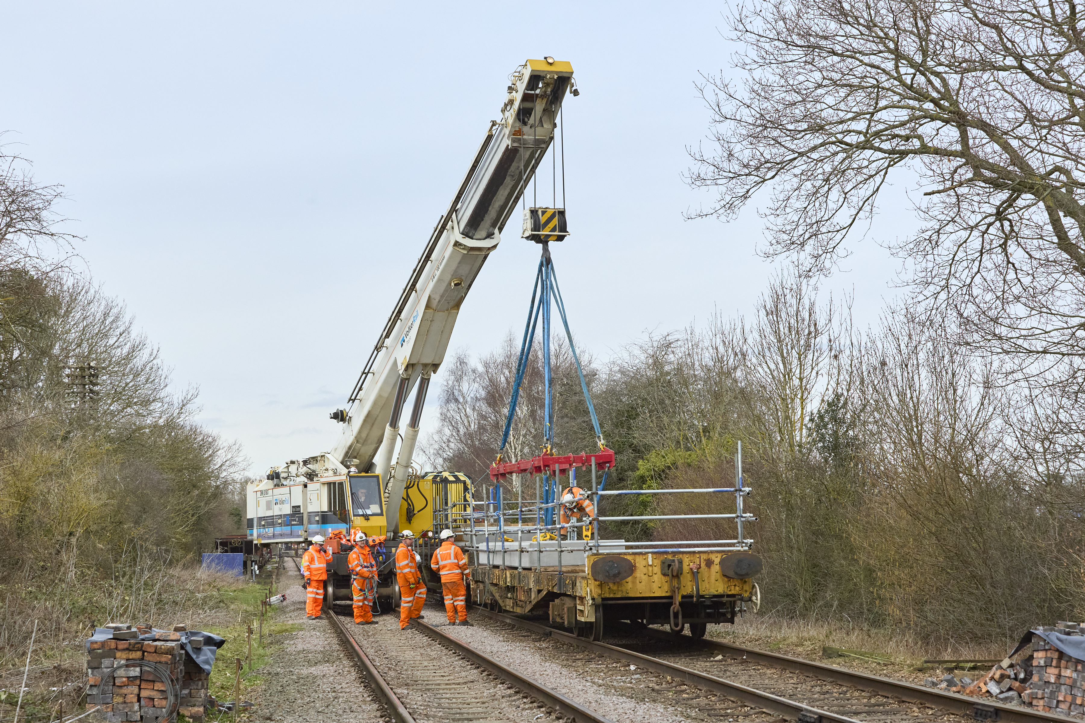Sister business unit, VolkerRail successfully installed the new bridge precast concrete decks and edge beams with the use of a Kirow crane in a joint team operation between VolkerLaser, a 130-tonne mobile crane contractor and GCR’s rail wagons. Following the successful installation of the precast units, the team completed further works to the bridge deck by installing the bridging joint plate, and filling sections with concrete to form the bridge deck.